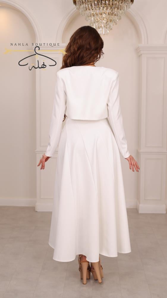 فستان ميدي وردي ناعم بقصة واسعة وانسيابية، يتميز بياقة مربعة وتصميم ناعم يبرز الأنوثة بأناقة مزود بجاكيت قصير بأكمام طويلة يضيف لمسة راقية وعصرية خامة مريحة بانسدال جميل.
